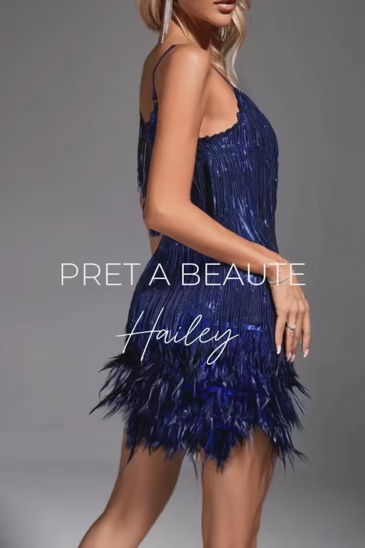 Precioso y delicado vestido rosa con hombros descubiertos. El vestido Hailey presenta tirantes finos y está decorado con borlas de lentejuelas y adornado con plumas en el dobladillo. Su encantadora luz brilla entre el movimiento y la quietud, haciéndote destacar en cualquier evento. Combínalo con tacones de aguja y un mini bolso para un look inolvidable. Consulta la tabla de tallas a continuación para seleccionar la talla adecuada.