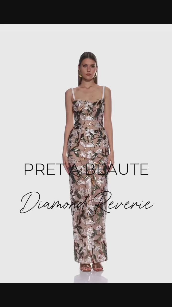 Crafted for the woman who captivates with confidence, the show-stopping Diamond Reverie gown features a stunning sheer floral lace overlay adorned with shimmering sequins that catch the light with every move. The figure-hugging silhouette effortlessly flatters your curves, while the delicate floral embroidery adds a touch of romance and whimsy. The dress is designed with thin, dainty straps and a long back zipper for a seamless fit. Its strapless-style neckline frames the décolletage beautifully, making it the perfect choice for formal evenings, galas, or special moments. Whether you're making a grand entrance or simply celebrating in style, the Diamond Reverie will ensure all eyes are on you.
